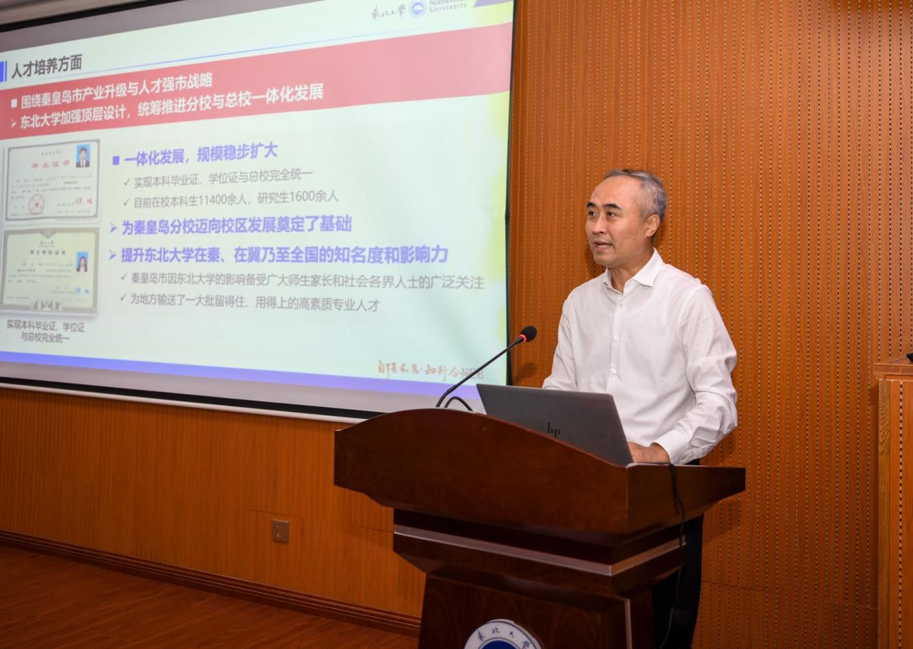 秦皇岛市政府秘书长李文生、市教育局局长肖凤利、市城管执法局局长陈立庭、海港区政府区长尹勃、东北大学秦皇岛分校领导班子成员、东北大学及秦皇岛分校相关部门负责人等参加调研和座谈。