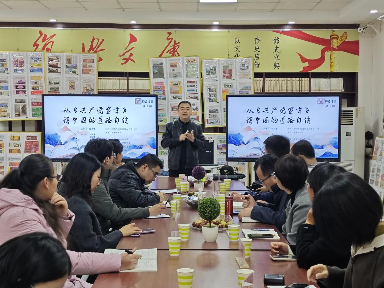何双雷作了题为“从《共产党宣言》谈中国的道路自信”的主题报告。报告中,他深入浅出地阐述了《共产党宣言》的核心要义与时代价值,并结合当今世界经济现状和中国的飞速发展,分析了中国特色社会主义道路的历史必然性与科学真理性。他指出,《共产党宣言》揭示的人类社会发展规律,为我们坚定“四个自信”提供了强大的理论支撑。作为党员干部要常读经典、勤于思考,不断从马克思主义理论经典著作中汲取智慧和力量,并将其转化为推动学校与学院高质量发展的实际行动。