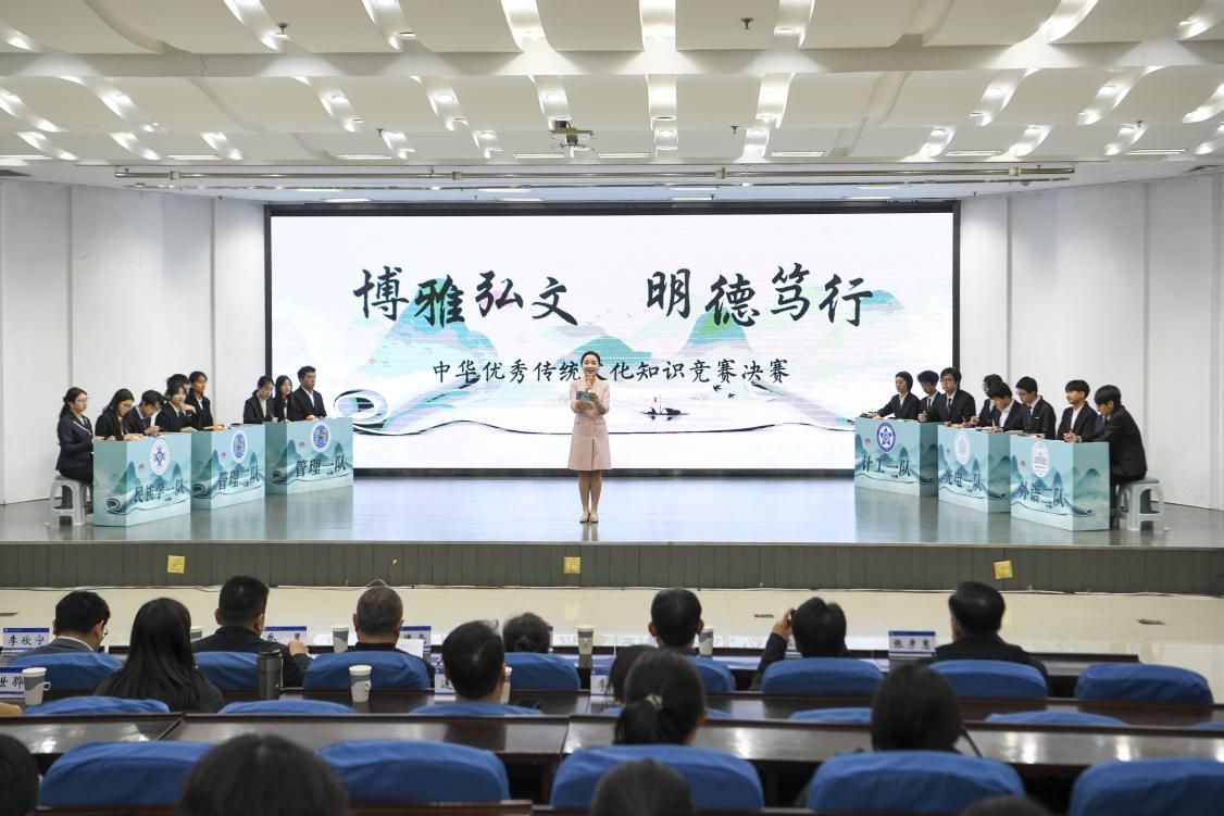 本次竞赛由我校党委宣传部主办,管理学院承办。初赛阶段吸引了来自各学院和研究生分院的20支队伍踊跃报名,经初试选拔,6支队伍脱颖而出晋级决赛。决赛设置助力题、必答题、抢答题、描述题、阐释题、评述题、飞花令、风险题8个环节,内容涵盖诗词成语、历史典故、习俗礼仪、文化艺术等多个方面,旨在传承和弘扬中华优秀传统文化,引导学生增强文化自觉、坚定文化自信。比赛现场气氛热烈,选手们或沉稳作答、引经据典,展现扎实功底;或反应敏捷、果断抢答,彰显团队协作与应变能力。阐释与评述时,他们思路清晰、旁征博引,表现出良好的思辨水平。飞花令环节中,他们才思泉涌、佳句层出,尽显深厚的文学积累与出色的临场风采。整场赛事节奏紧凑、文化内涵丰富,既展现了我校学生全面扎实的知识储备,也进一步激发了广大学子对中华优秀传统文化的学习兴趣。
