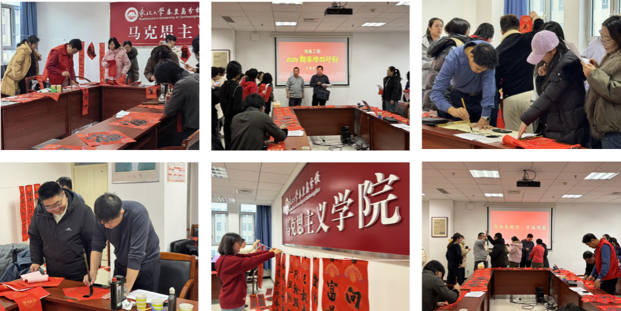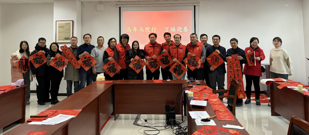 1月4日,马克思主义学院在人文楼510室举办“马年马院行·万福迎春”活动。活动邀请我市知名书法家周博、徐向君、孙勇、张强、李江申、李昌也、潘磊、纪晶伟和诗词楹联学者王红利、董兴杰、海岳邨,与师生共同书写、讲解春联,切身感受传统文化魅力。
