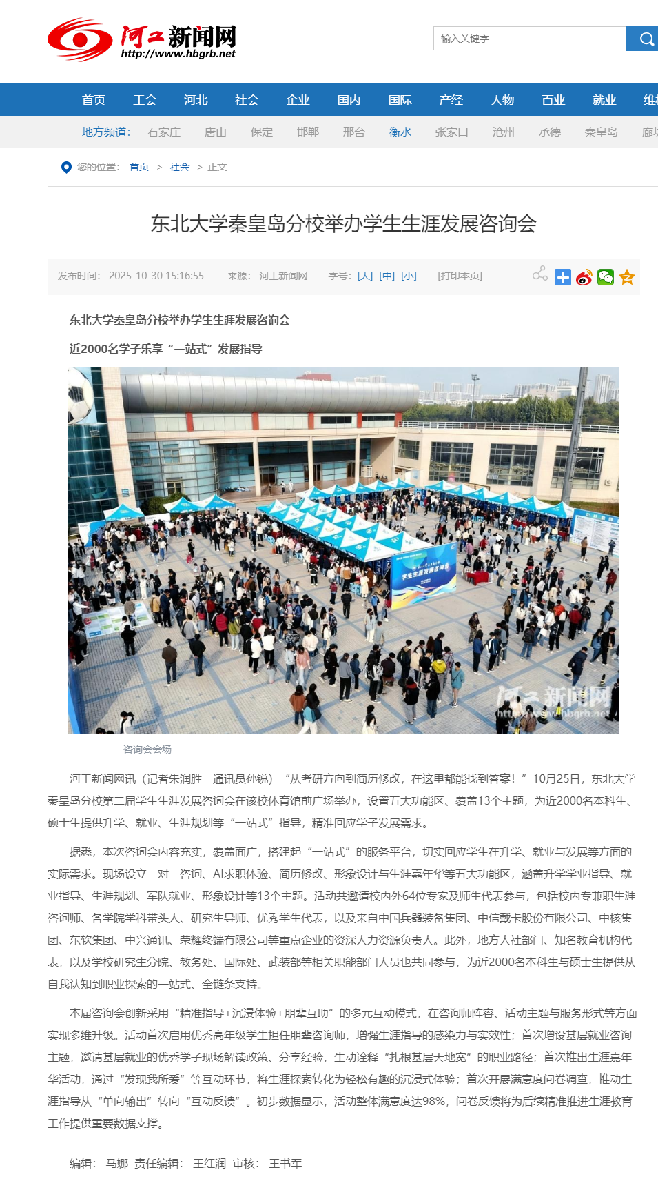 日期:2025-10-31 来源:河工新闻网2025年10月30日